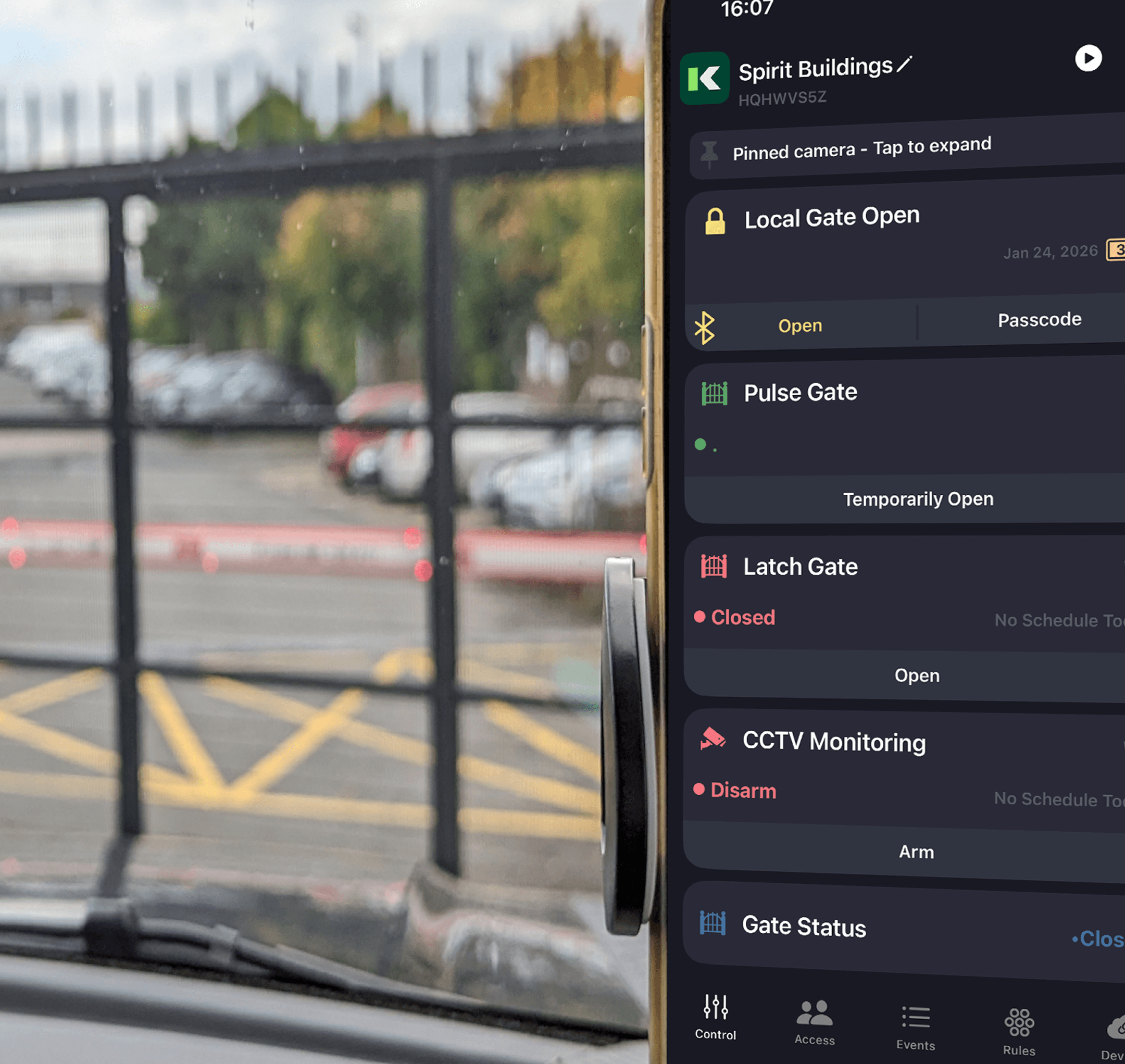 When the gate is opened, the security system in the main yard disarms for 15 minutes to allow the driver to park up and get out of the cab.